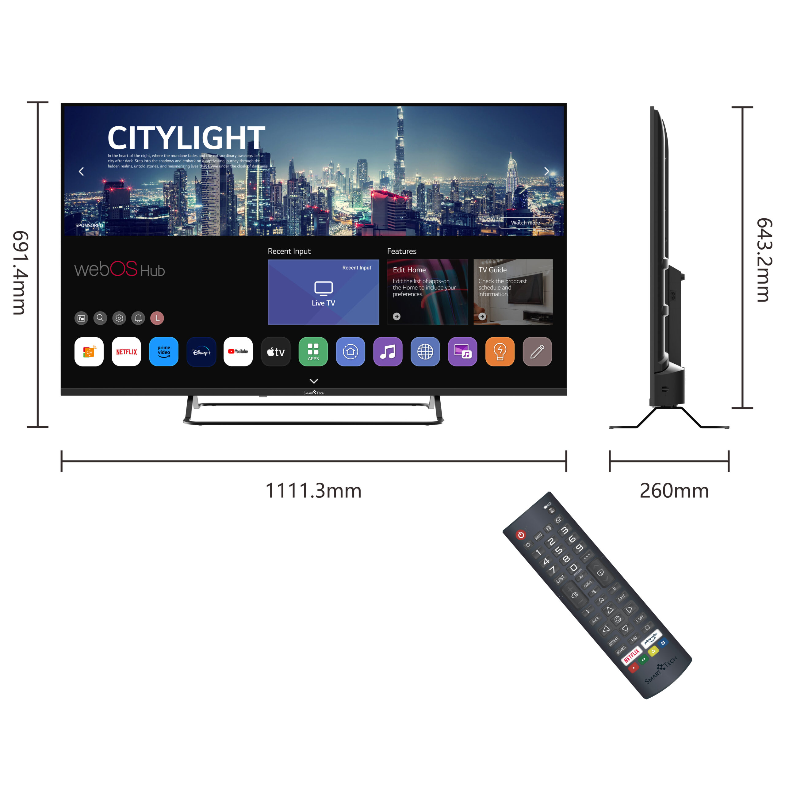 | Net size with stand (W x H x D in mm) | 1111.3*691.4*260 | ||